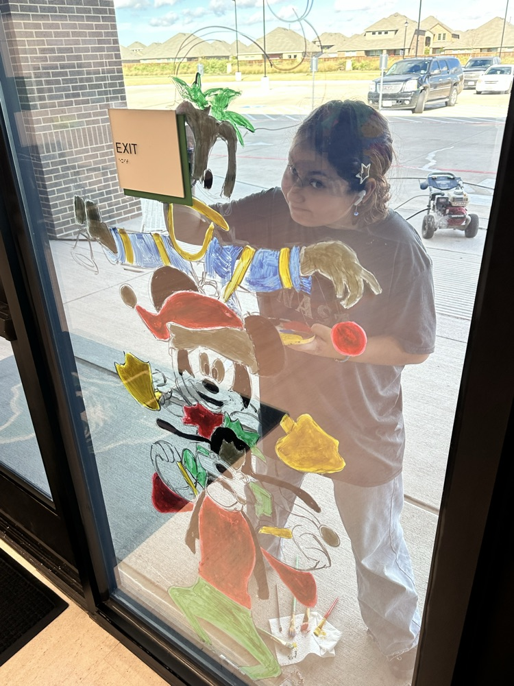 Mrs. Gandy and our High School Art students spent 6 or 7 hours adding holiday magic to Kirkpatrick Elementary! They helped brighten the campus with festive artwork just in time for students to return to a little Christmas spirit. 🎄