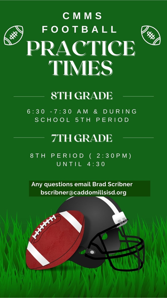Remember our Dine to Donate at Texas Roadhouse in Rockwall! You have to mention your with Caddo Mills Middle School and we will receive a portion of the sales! Thank you and see you tonight!